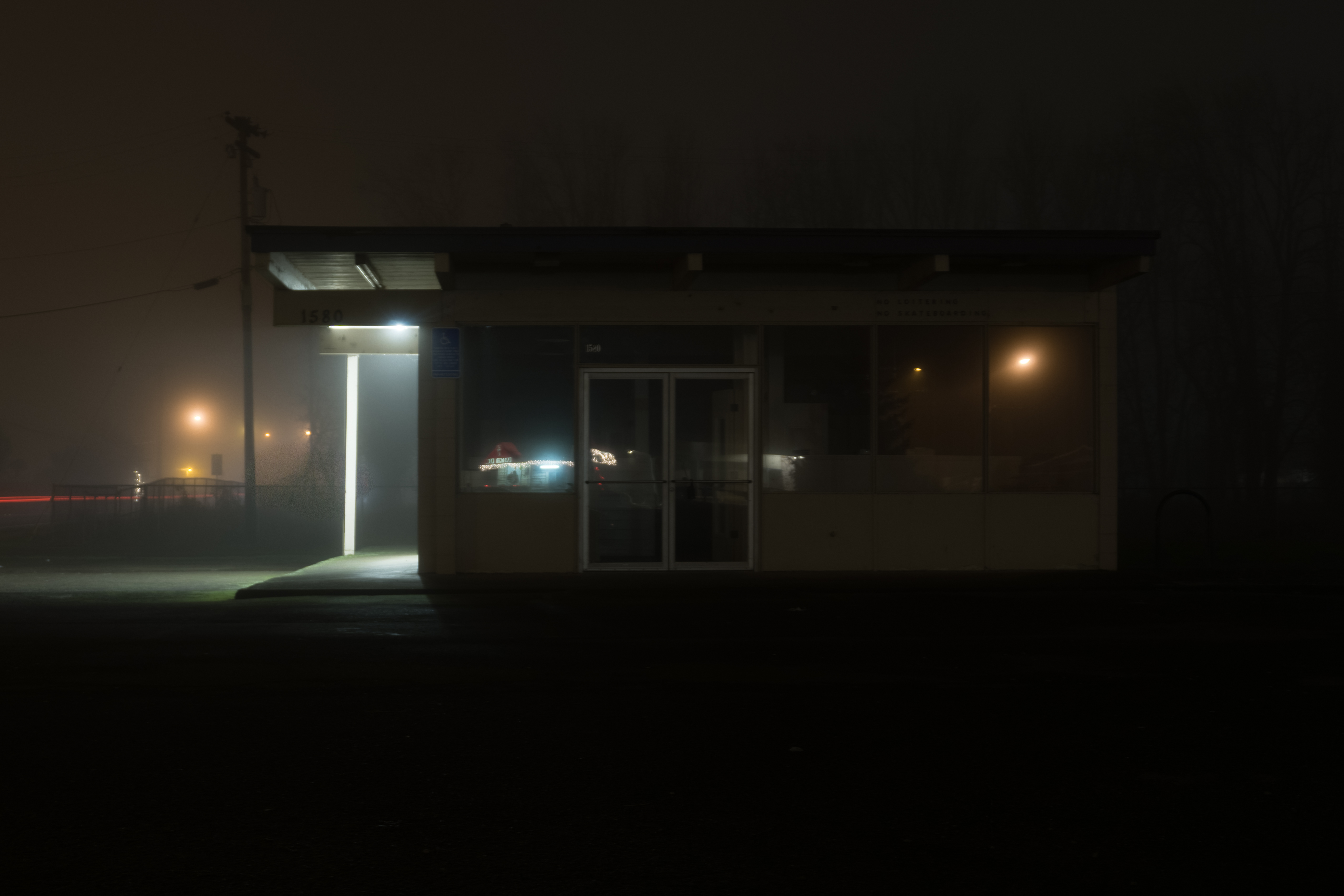 Every day on my way to work I drive past a strip mall on River Road, and one morning I turned into the parking lot just as the sun was coming up. Or so my cell phone said. The fog wasn’t dense, but there was enough of it that the amount of light in the sky didn’t appreciably change.